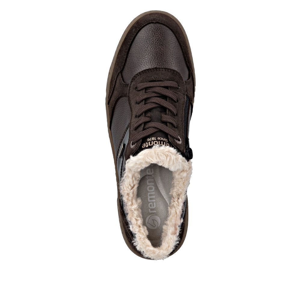 Ladies, pay attention! With these remonte low-top sneakers made of smooth leather are a must-have in any shoe cupboard this season. The clever combination of lacing and zipper provides optimal support and makes the shoe easy to put on and take off. The fluffy shaft edge effectively freshens up the design. The padded and removable insole meets a cushioning and grippy sole that superbly balances even hard ground. Thanks to the comfort width, there is enough space in the forefoot area. The shoe also hits the bull's eye when it comes to comfort thanks to the water-repellent remonteTEX membrane and the fluffy warm lining. Grab it, girls!