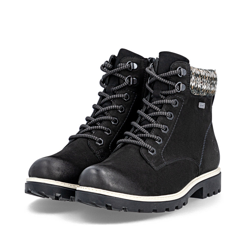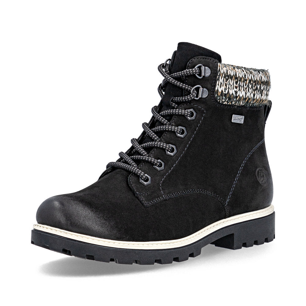 All-time favorite! These remonte lace-up boots made of suede leather have everything a comfortable shoe needs. Thanks to the stitchdown construction, this shoe is particularly durable and flexible. The clever combination of lacing and zipper makes the shoe easy to put on and take off. The shoe has a flexible and cushioning sole that impresses with good traction for a secure step. The comfort width offers enough space for the feet to feel comfortable even when worn for longer periods. The water-repellent surface of the shoes offers optimal weather protection and the thermal insole features protection against the cold. You can't get more style than this!